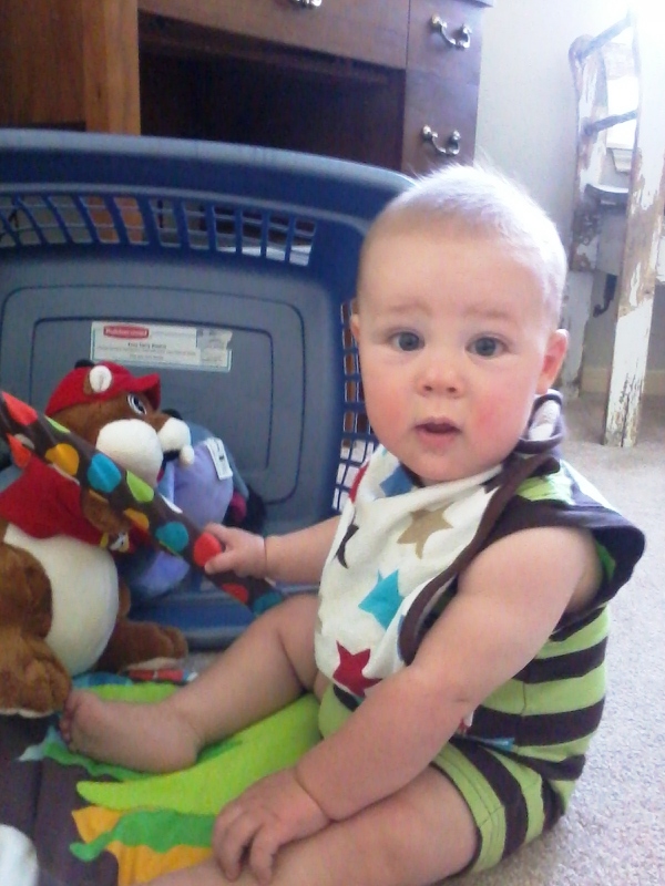 Behold, the joys of eating! There's Peas, and carrots. And yogurt all over the table!