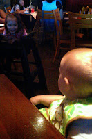 Breakfast at IHOP. There was something (or more likely someone) fascinating behind Daddy!